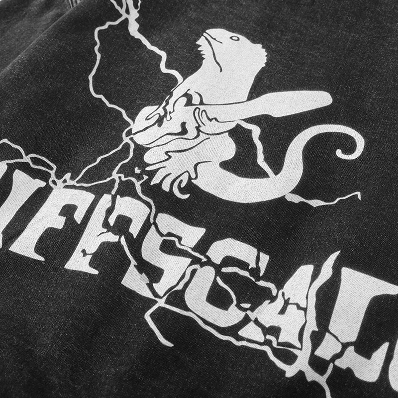 The back is highlighted by a bold graphic lizard and lightning print for standout, edgy streetwear vibes.